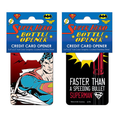 View full detailsThirsty? Pop open a drink with this stylish DC Comics Credit Card Bottle Opener! Bottle opener features an image of Superman on one side and the sa...