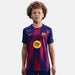 FC Barcelona's 2025/26 home jersey updates one of the most recognizable looks in soccer. Their iconic Blaugrana is fused with movement-inspired graphics and bright, energetic accents to celebrate their fans' unity and devotion to the club. Nike Dri-FIT technology moves sweat away from your skin for quicker evaporation, helping you stay dry and comfortable.