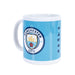 Start your day with a touch of Manchester City pride using the Crest Ceramic Coffee Mug. This sky blue ceramic mug features multiple Manchester City crest designs in various sizes, creating a stylish and vibrant look. With a durable glazed kiln-fired finish and a comfortable white handle, it's perfect for any Man City supporter who loves their coffee or tea.