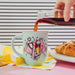 Adorable spooky mug features everyone’s favorite duo from the dead Jack and Sally Skellington. Features the two on a pink background with the text “Misfit Love” written around the rim.